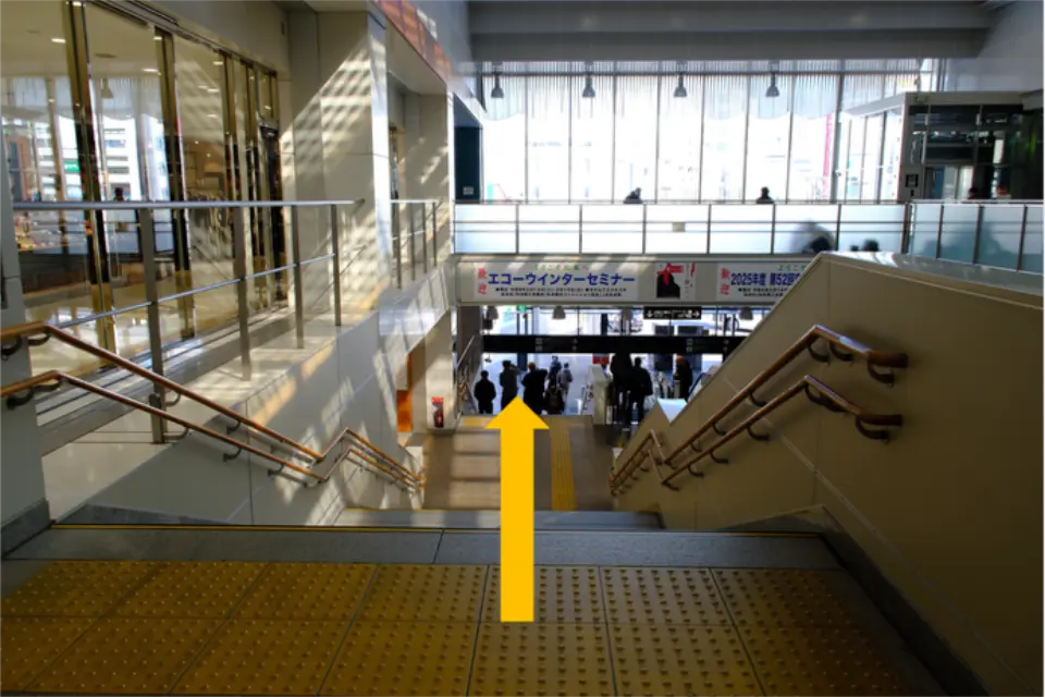 ②階段を下りたら、左方向に進む。
