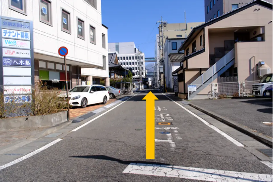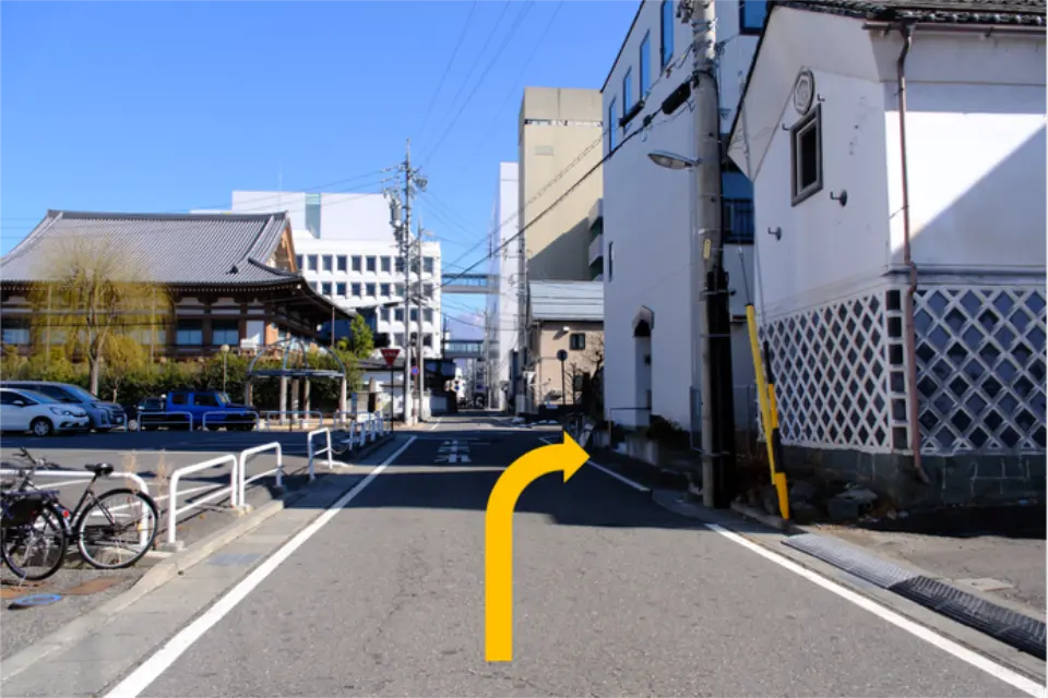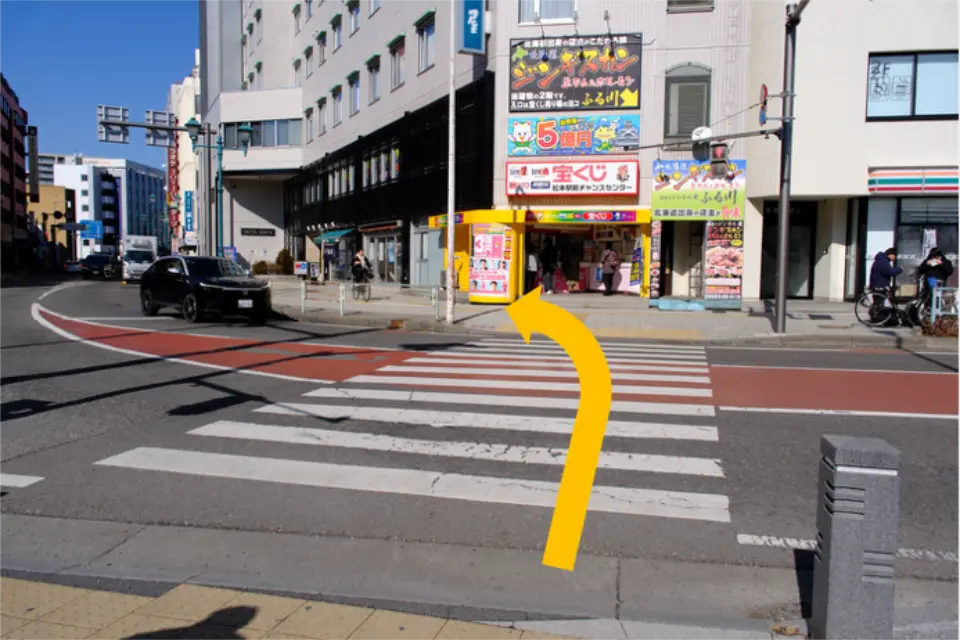 ③セブンイレブン前の信号を渡り、左手に進む。